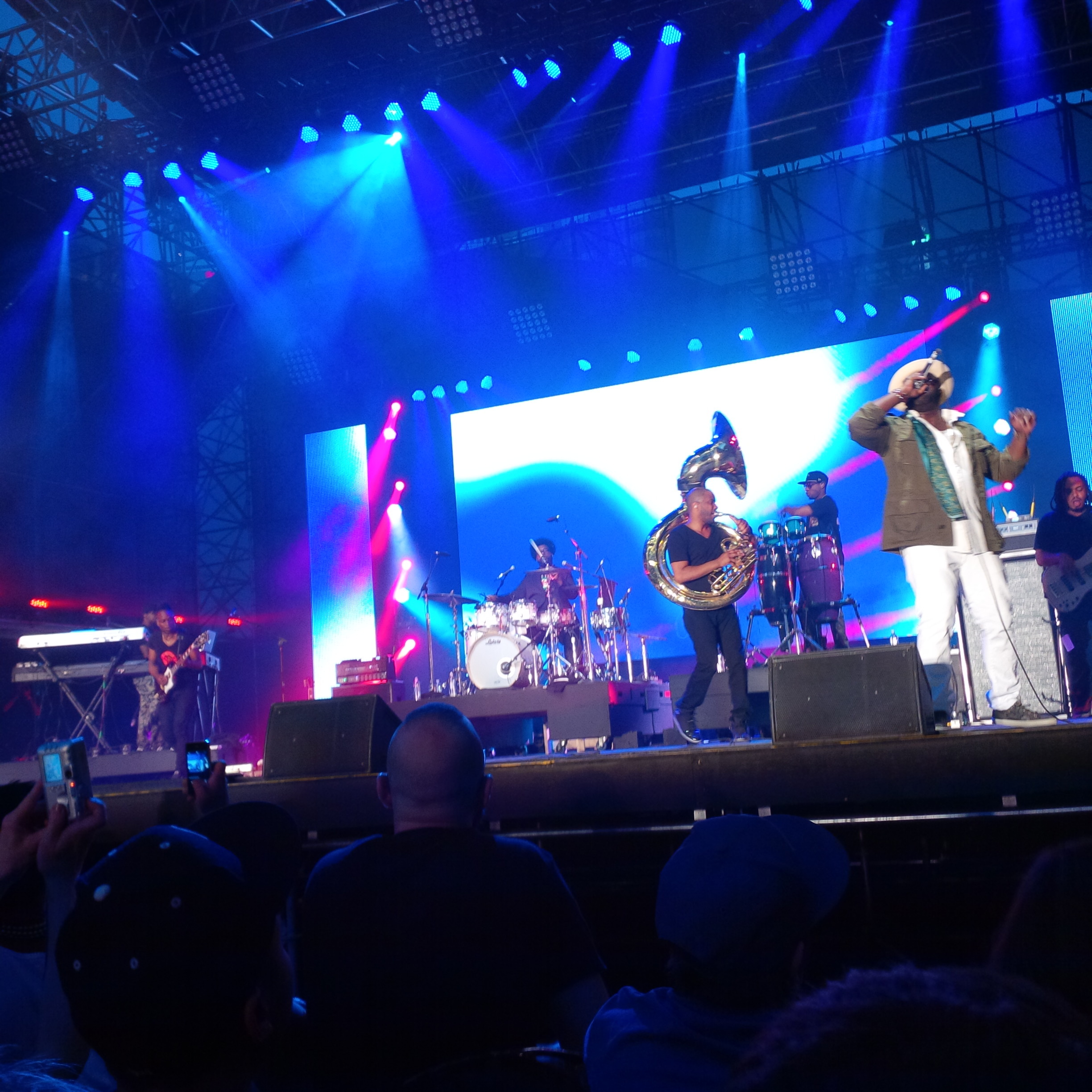 After Scratch wrapped up his interlude, The Roots came back with “The Fire”, with Captain Kirk singing John Legend’s chorus and Black Thought delivering his verses to perfection. Next was another solo, this time by The Roots’ sousaphone player, Tuba Gooding Jr. He’s arguably the second hardest working band member on stage (next to Questlove), as he runs and jumps around, pulling stunts while still hitting every note on his heavy-looking sousaphone. Soon he got into a consistent beat, as the rest of the band joined him in what turned out to be “Break You Off” from their 2002 album, Phrenology.
