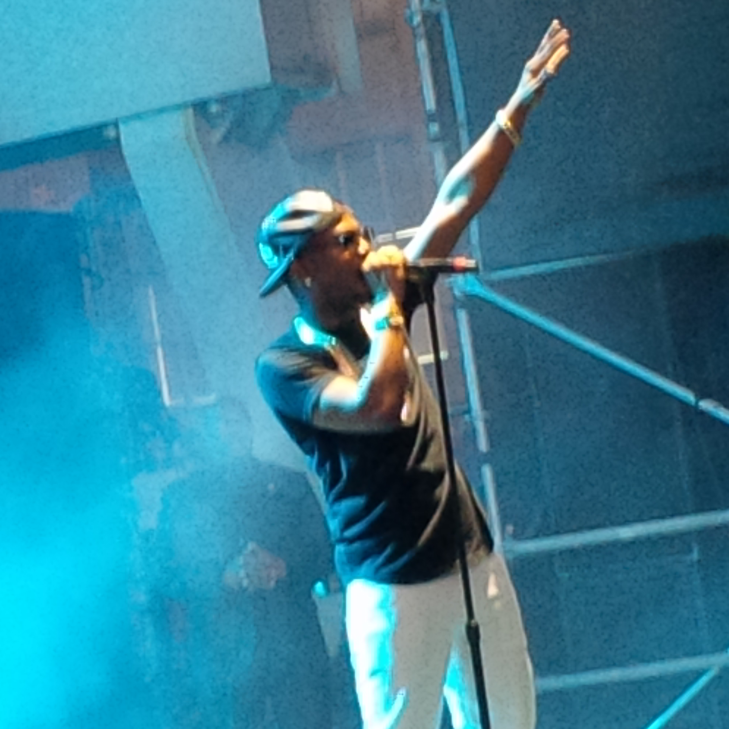 Anyway, in between dealing with Juicy J’s douchebag fans, I noticed he performed a bunch of songs off Stay Trippy like “Smokin’ Rollin”, “So Much Money”, “Bounce It”, and “Scholarship”.  He also did some old Three 6 Mafia hits like “Stay Fly”, “Poppin’ My Collar” and “Tear Da Club Up”, as well as his newer guest features on Katy Perry and Miley Cyrus songs.  You could tell Juicy J was all about the “ratchet” folks, as people got more turned up for his teases to offer shots from his bottle of Hennessy and even his gold chains than the actual music.  While he used a lot of empty offers like this to get the crowd involved, Juicy J did sign a pair of Jordan sneakers and threw them into the crowd at one point, because Juicy J fans seem to be cookie-cutter stereotypes.