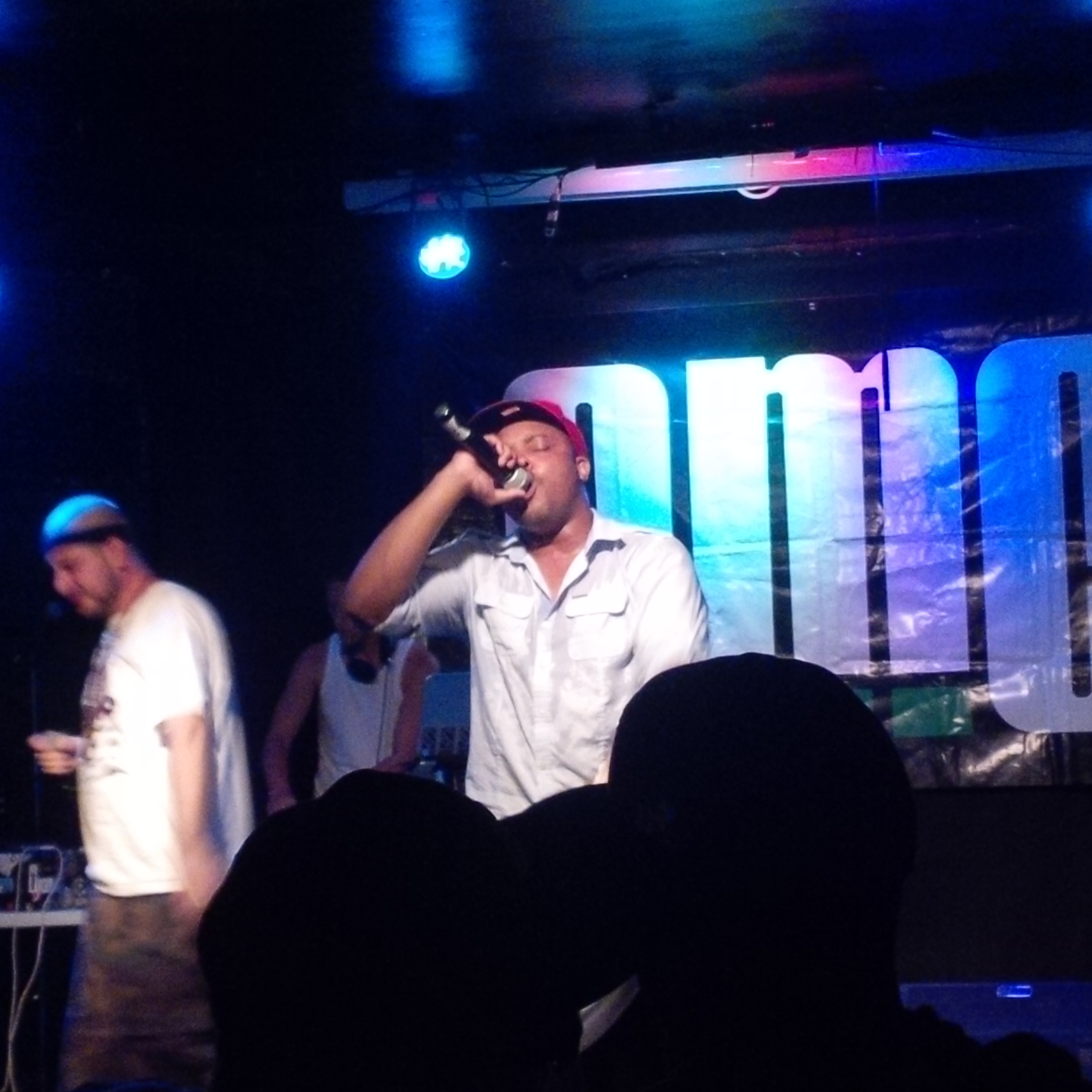 I showed up well over an hour after the doors had opened, yet the building only had a handful of people inside. There was one opening act already on stage, but he didn’t seem to draw much attention as people were more focused on their drinks. This was one of the smallest venues I’ve ever been to, kind of like the Casbah (also in Hamilton). This Ain’t Hollywood did have a nice selection of booze though, including Red Stripe beer. After a long wait, a few more people arrived at the venue and New Breed MC (pictured above) called for people to get out of their seats before he began his set.