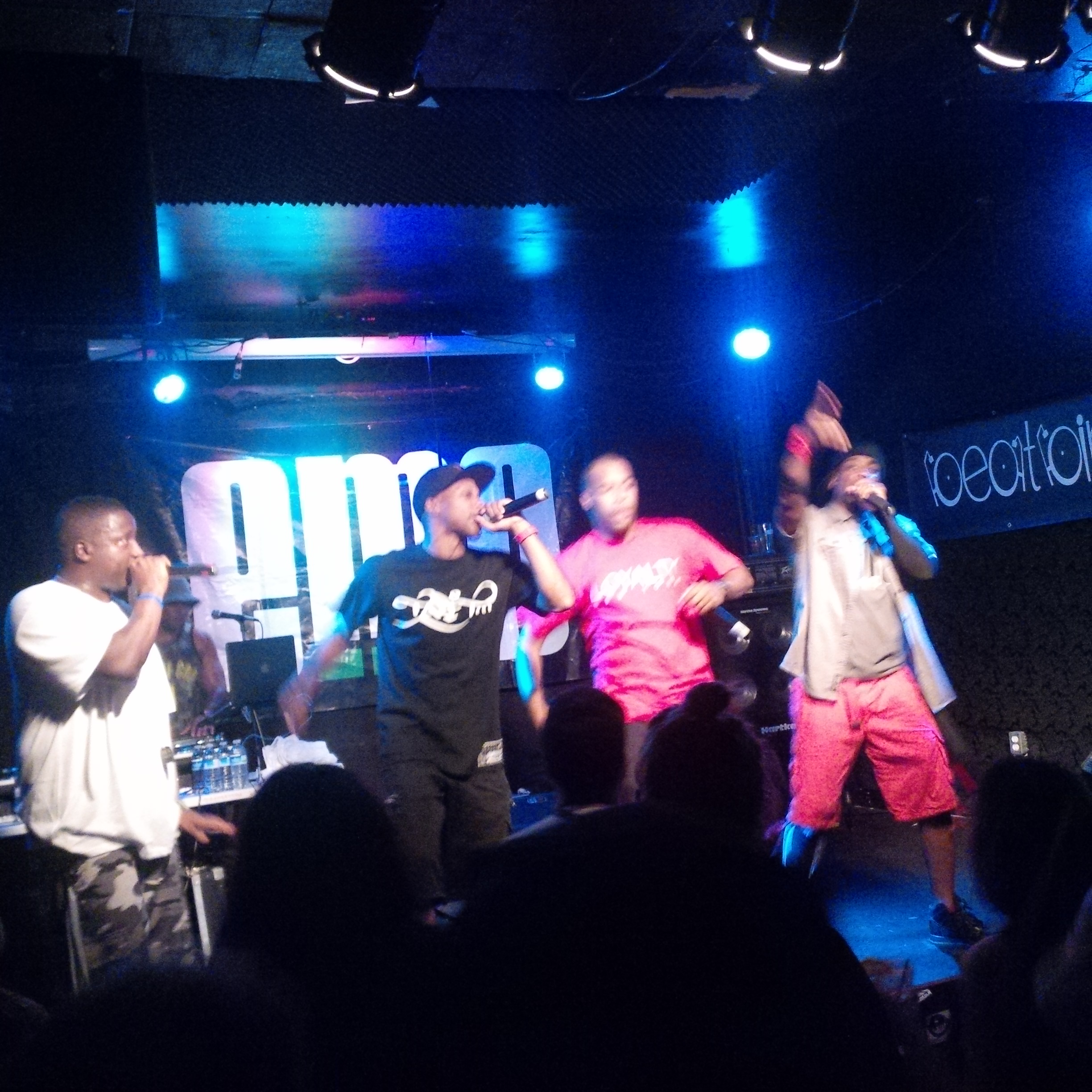 By now there was a decent sized crowd for the small venue, as the eMC crew made their way to the stage. They came out to the first song off the new EP, “Stay Busy”, before getting into a bunch of tracks I assumed were off the first album, because I didn’t know them. One thing I noticed is they put a lot of work into their stage presence, timing their movements so the chaos was more organized. Sometimes they’d move in a circle as each emcee rapped their verses, sometimes they’d stand in a line as the emcee rapping took the front of the stage. Wordsworth even jumped into the crowd and rapped amongst the people a few times. At one point Stricklin got off the stage so that Ace, Punch & Words could do songs they have as a trio, including one of my favourites: “Travelocity”. To add some extra energy, they changed the beat to Jay-Z’s “You, Me, Him, Her” for Wordsworth’s final verse.