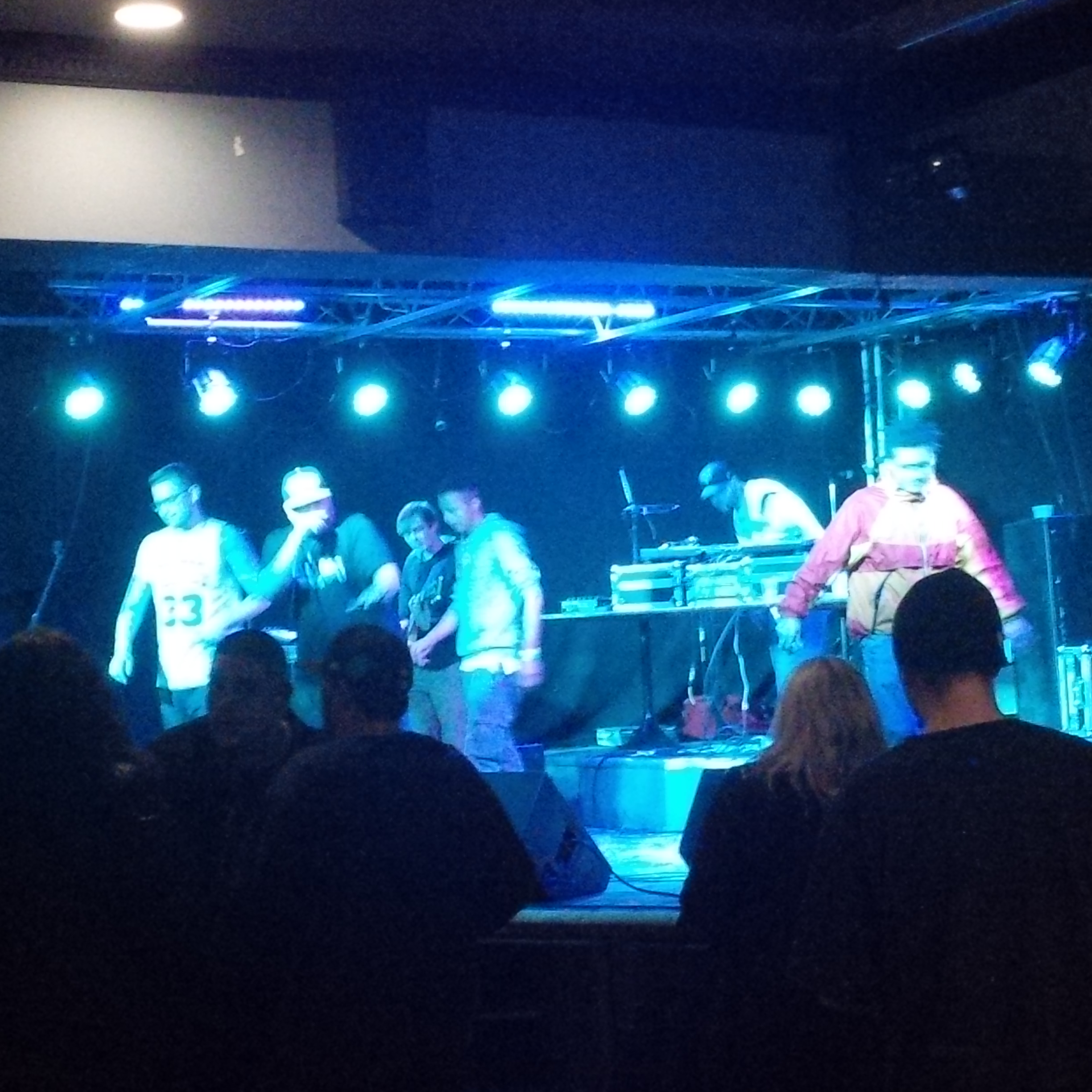 I arrived at Rockpile West about an hour after doors opened, and it was much emptier than the last time I was here (back in February to see Talib Kweli). The early opening acts performed in front of an empty dance floor, with most of the crowd either at the bar, sitting at tables, or by the merch booth. The usual host at this venue, Stacee Brizzle got some people hyped and onto the floor as some familiar local artists hit the stage. Pengeah came out with some hard-hitting beats, as Gene One, Harvey Dentist and their crew rapped over their producer’s live guitar. Intoxicated Prophets also rocked the stage with some rapid-fire raps, and The Syndicate threw t-shirts into the growing crowd when they rocked afterwards.