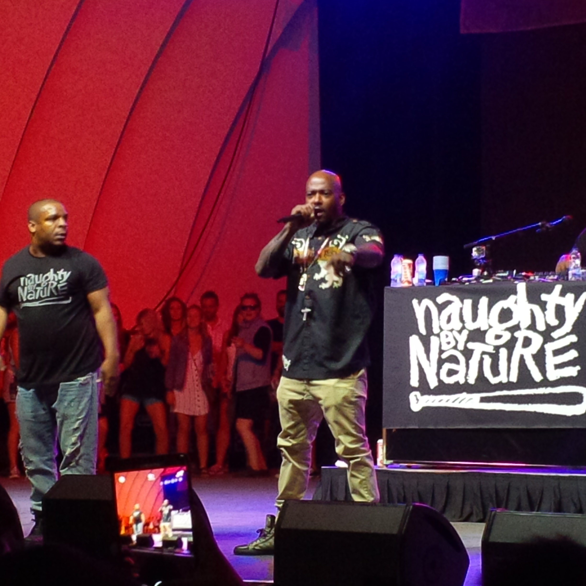 Hare Squead had a live band with them and they rocked the crowd with their EDM-like production and a combination of sung and rapped vocals. The crowd was still fairly small, with many people just passing through to get to their next beer. After Hare Squead wrapped up their set, some hosts from Flow 93.5 FM brought some fans on stage for some games. There was a lip-sync competition that turned into a dance-off between two pairs of girls, and soon afterwards it was time for Naughty by Nature to take the stage.