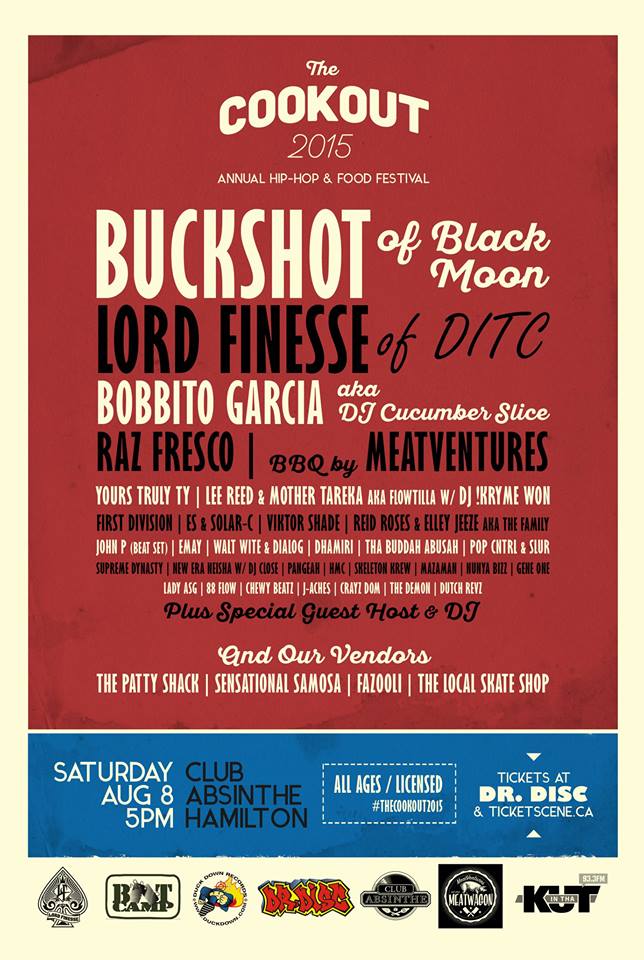 The 2015 edition of the festival will feature Raz Fresco, an MC from Brampton who I’ve seen open at several Wu-Tang concerts, Bobbito Garcia a/k/a DJ Cucumber Slice doing his first ever DJ set in Canada, and a couple Hip-Hop legends whose names speak for themselves: Lord Finesse of D.I.T.C., and Buckshot of Black Moon (for the younger heads, Eminem remixed one of Black Moon’s tracks on his MMLP2 album). The Cookout Festival lets you see some all-time Hip-Hop legends and some great local artists in a casual, up-close setting, and Hamilton concerts almost always have cheaper tickets than the extravagant Toronto. Check out my review of last year’s festival if you need more proof that this is a dope event.