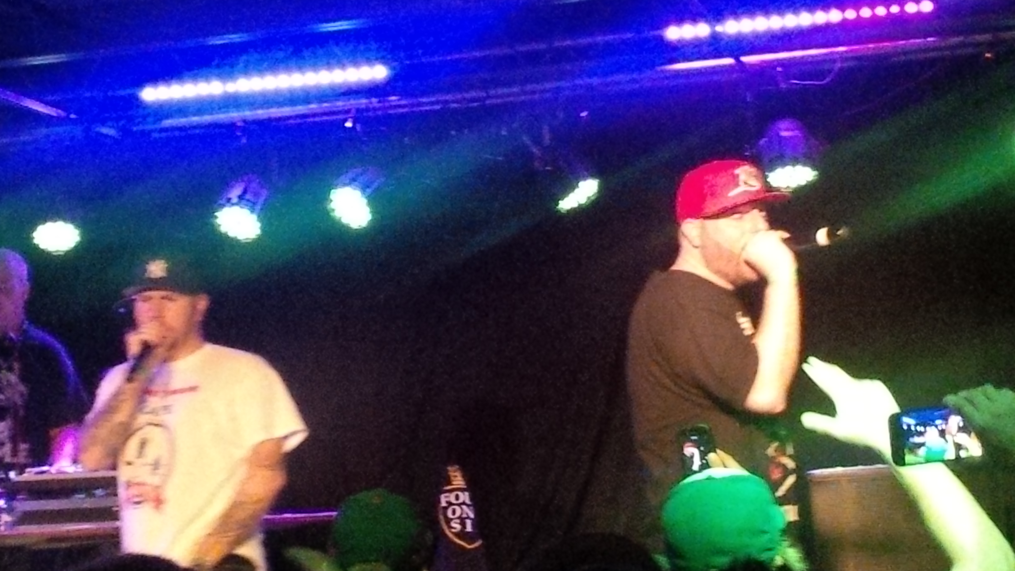 Apathy & Celph Titled came out on stage shortly after I arrived, with DJ Auzzie Skratch starting them off with the Rocky Theme-sampling “Demigodz Is Back” and continuing with another KILLmatic track, “Captain Caveman.” They did “Shoot First” off of Apathy’s Wanna Snuggle? album before taking a break for some freestyles. Over the last two times I’ve seen Apathy perform, he’s gone from performing a work-in-progress verse off his phone to performing it off the top of his head, to finally recording it as an official song for his Weekend At The Cape EP. This time he had a brand new, fresh verse he spit off his phone, and Celph Titled followed up with his own acapella freestyle off the top of his head.