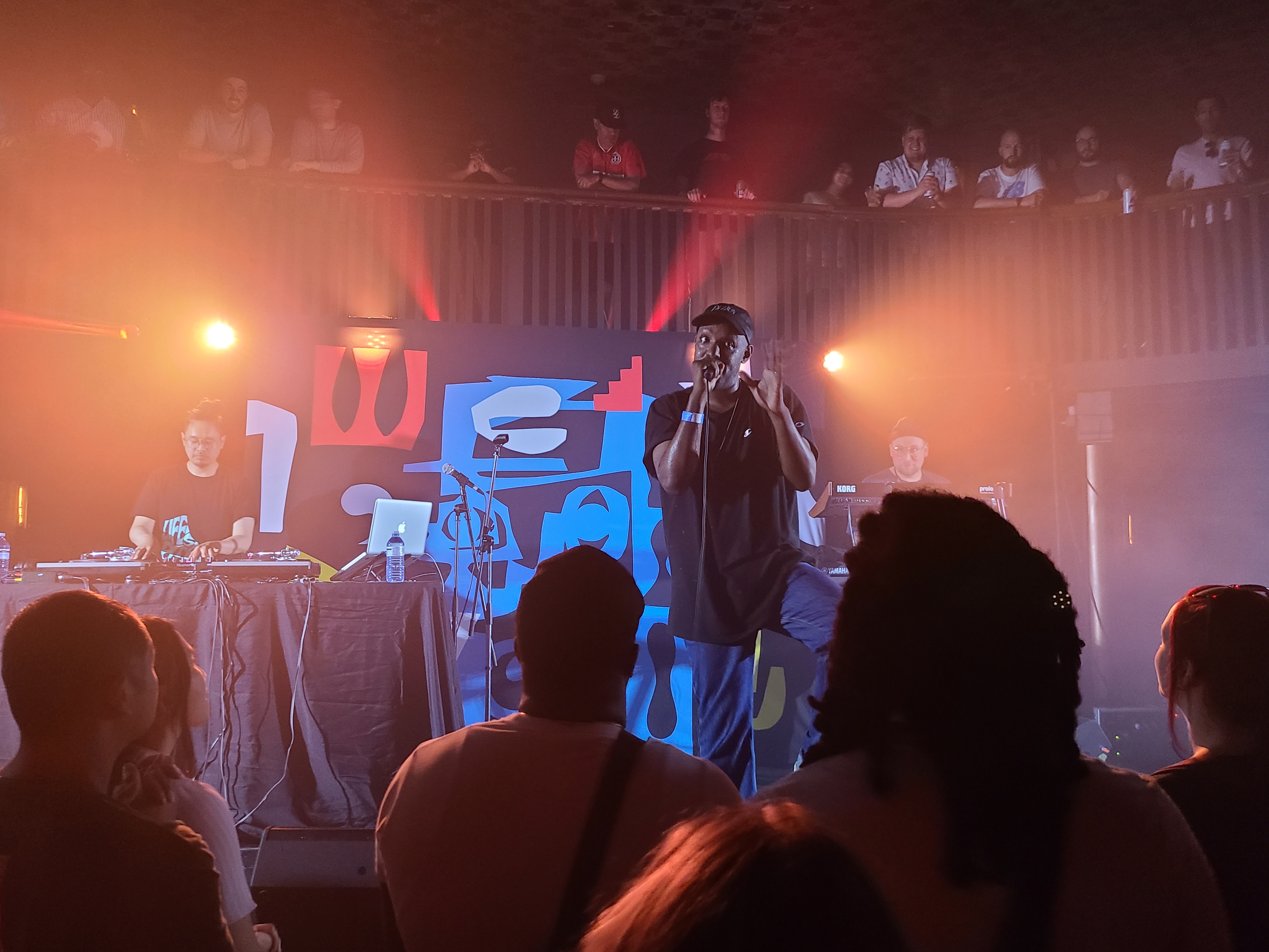 With many of the larger venues in the city having been reopened for concerts for a while now, this would be the first small-venue, indoor show since before the pandemic for a lot of fans. It would also be my first time catching a show at Longboat Hall, which is the smaller basement-level room attached to The Great Hall, where Shad performed two sold-out shows back in 2018. Longboat Hall proved to have decent flexibility for post-pandemic times, as fans who wanted to avoid the crowd could stay on the balcony surrounding the entire club and still catch a good view of the show. Fans who prefer to be up close to the artists on stage would gather on the floor level, and would get an intimate performance from Shad as well as his opener, Just John.