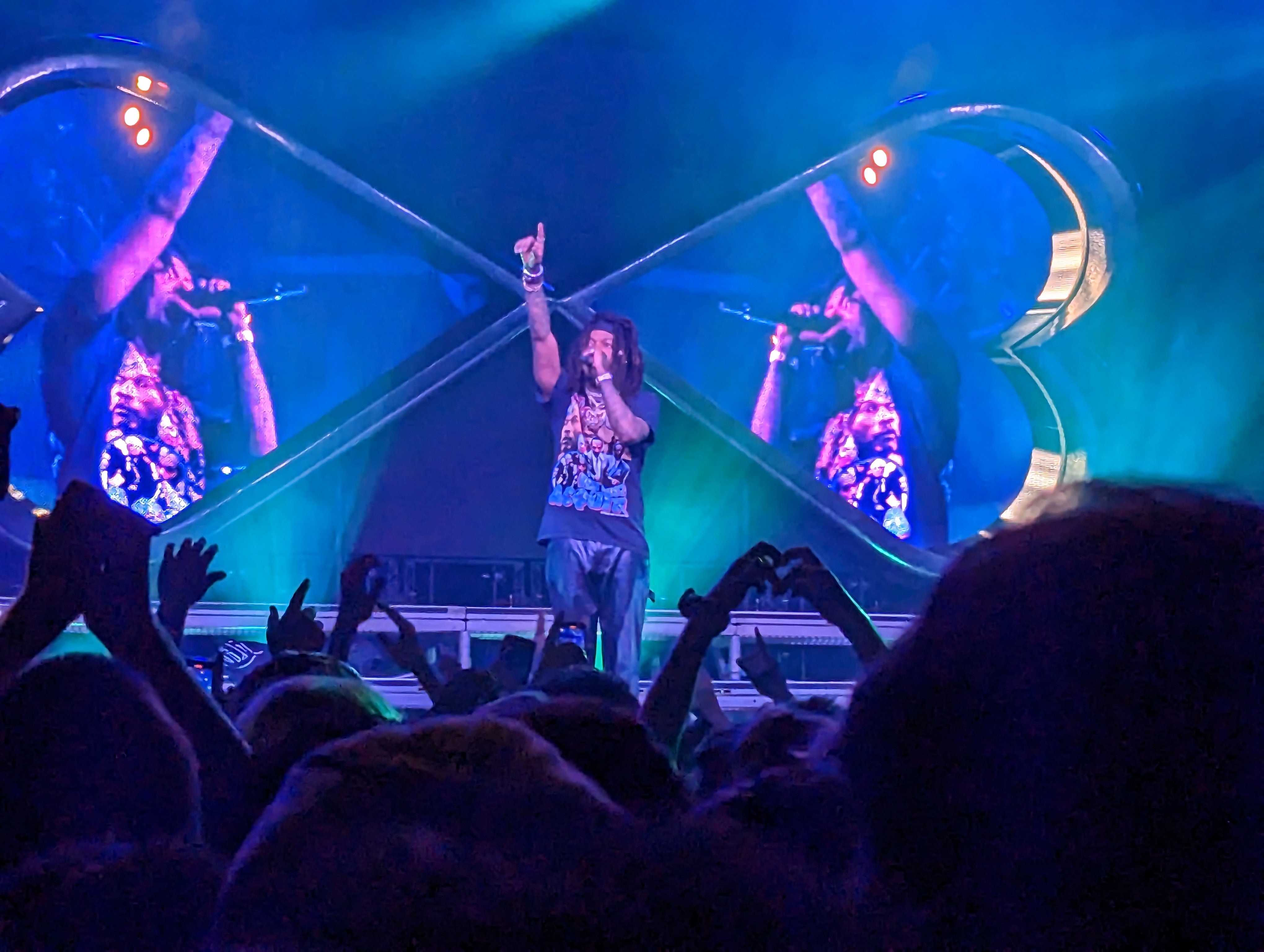 Besides the handful of songs that I knew, this would be my first time experiencing most of Smino’s music. Like J.I.D, he also had a band backing him up, with live drums, a guitarist, and a DJ, plus had a background singer who showed off some wicked vocals to test the mic, and a dancer who would occasionally join him on stage. The vibe wasn’t quite the same as J.I.D’s, as J.I.D had the high-energy songs with rapid-fire, chopper style raps and an emphasis on the lyricism, whereas Smino comes off as more of a soulful vocalist with psychedelic dance songs focused on the energy and the feel more than the raw raps. While their styles are much different, the contrast still works nicely for the live show, as we got to just bounce and vibe out to Smino’s music after moshing and jumping around to J.I.D.
