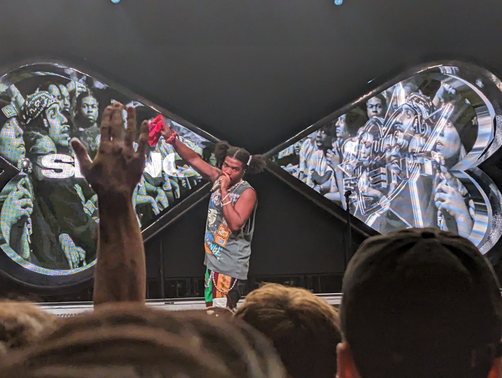 Smino performed like a rock star, showing off his unique cadences and using his backup singer effectively to cover the many layers of vocals in his songs. He’d get the crowd participating throughout his set, keeping up the Luv Is 4ever theme with occasional “heart checks,” and always getting the reaction he wanted from the crowd. He even brought a fan on stage to rap with him at one point. While I didn’t know many of his songs, I can say the showmanship was impressive, and that he nailed a wide range of vocals throughout his set.
