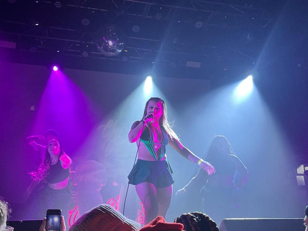 We got to the venue just over an hour after doors had opened, and the show was just getting started with local artists warming up the stage. The local openers were hit or miss at this show, with most of them trying to rap over their full songs being played through the speakers. Some openers were able to cut through on the mic and stand out in their own ways, but others had flows that sounded cluttered, overlapping with the recorded vocals, or they were drowned out completely and appeared to be lip syncing.