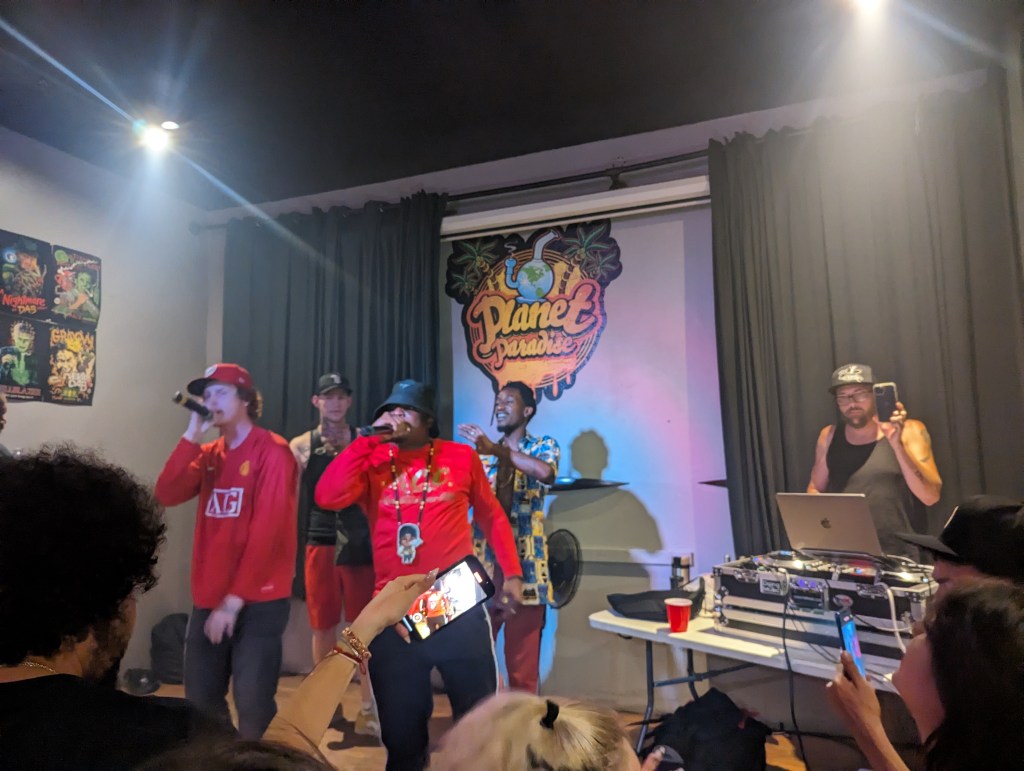 Joining myself on the panel of guest judges were Raw Dog Entertainment artists Blaxxx Bossalini and Gov’Nah, and they would get on stage next to perform a 4-song set that included their newest collab released just a day prior, “The Meeting.” After them would be the next match-up, which unfortunately had a no-show, giving Valintino the automatic W just for showing up. Valintino still got to perform a 3-song set, and he had heads nodding as he delivered some dope punchlines in his verses. I didn’t pick up on the song titles but he showed diversity, spitting a rapid-fire flow on his first song, then going with more of a boom-bap style on the second, although some lines got cluttered with him rapping over his own vocals. His third track was much more clear, as he spit his raps raw with no backing vocals and still had the bars to captivate the crowd.