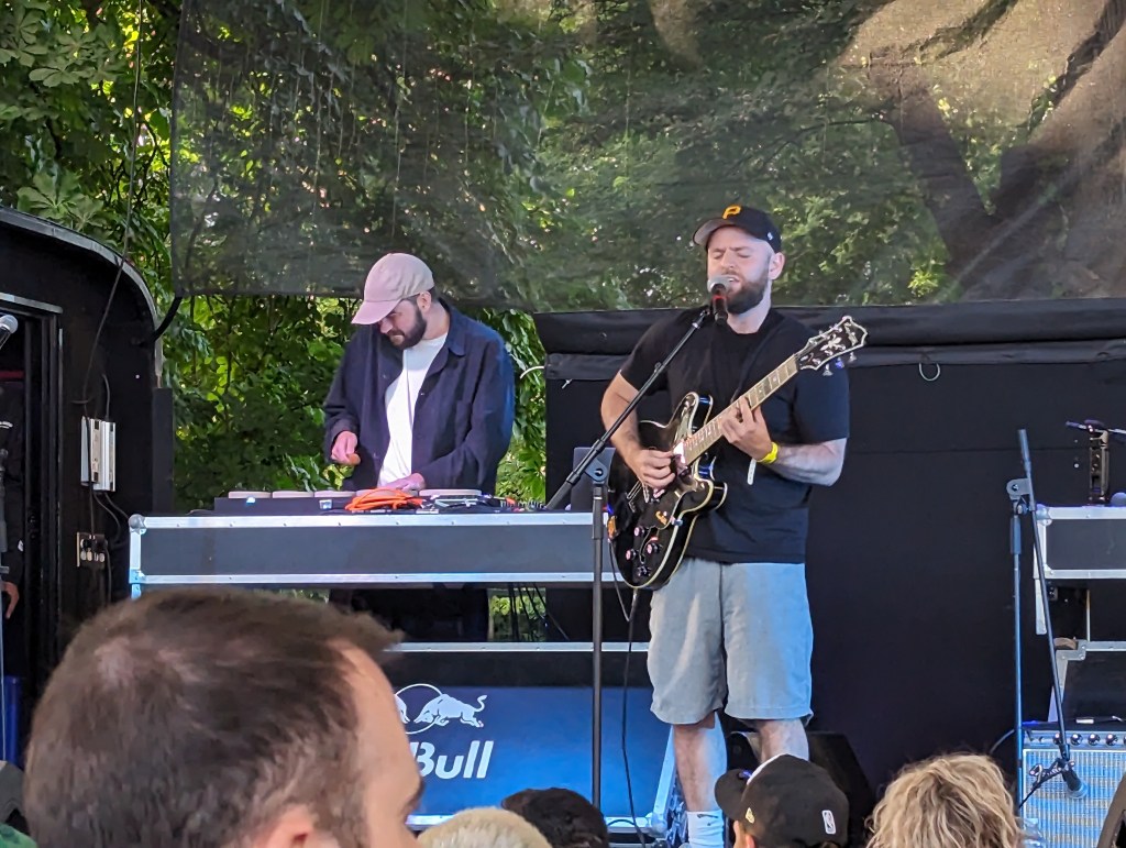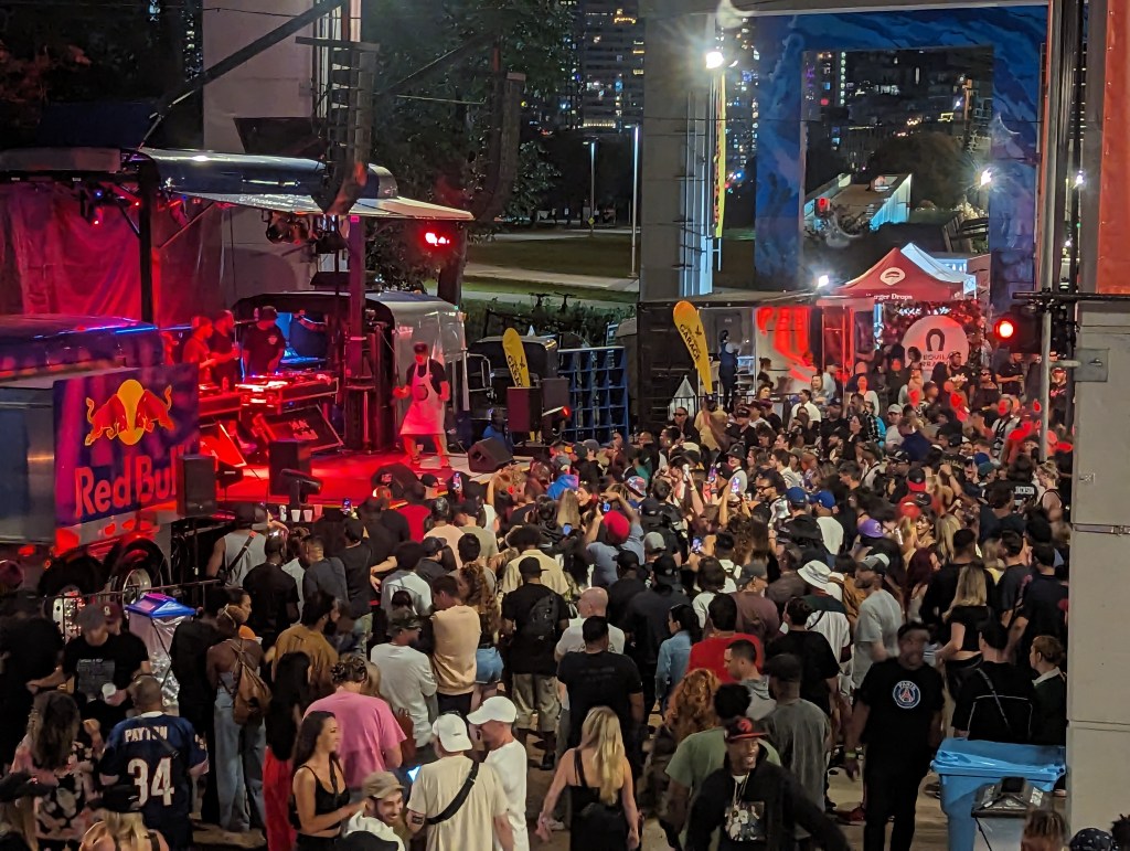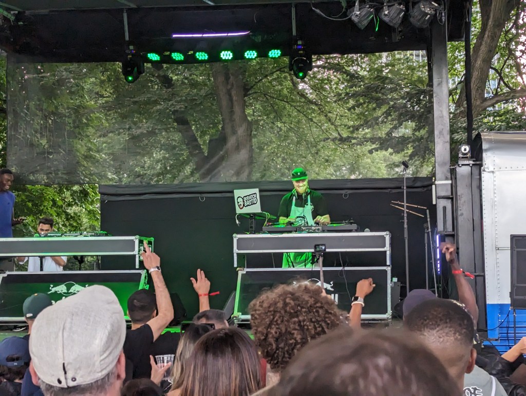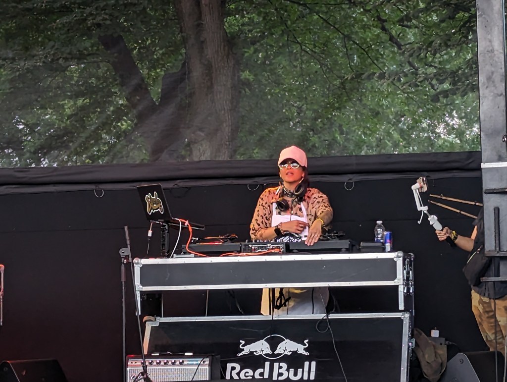 This year’s edition of Bastid’s BBQ would take place at The Bentway, which is a relatively new outdoor space underneath the Gardiner Expressway that’s been revamped to host events and art installations. This was my first time seeing a concert at this venue, and it seemed to fit Bastid’s BBQ perfectly, giving it an underground feel with tasteful graffiti murals visible on the pillars holding up the Gardiner, and a mix of gravel, dirt, grass, sidewalk and boardwalk to walk on in the main areas. A Redbull truck transformed into a stage and was parked in the middle of the festival grounds, with a grassy hill as well as concrete steps to a balcony serving as vantage points above the main dance floor. There were also plenty of picnic tables set up near the main entrance, giving fans a dedicated space to enjoy the BBQ portion of the festival with a good distance from the dance floor.