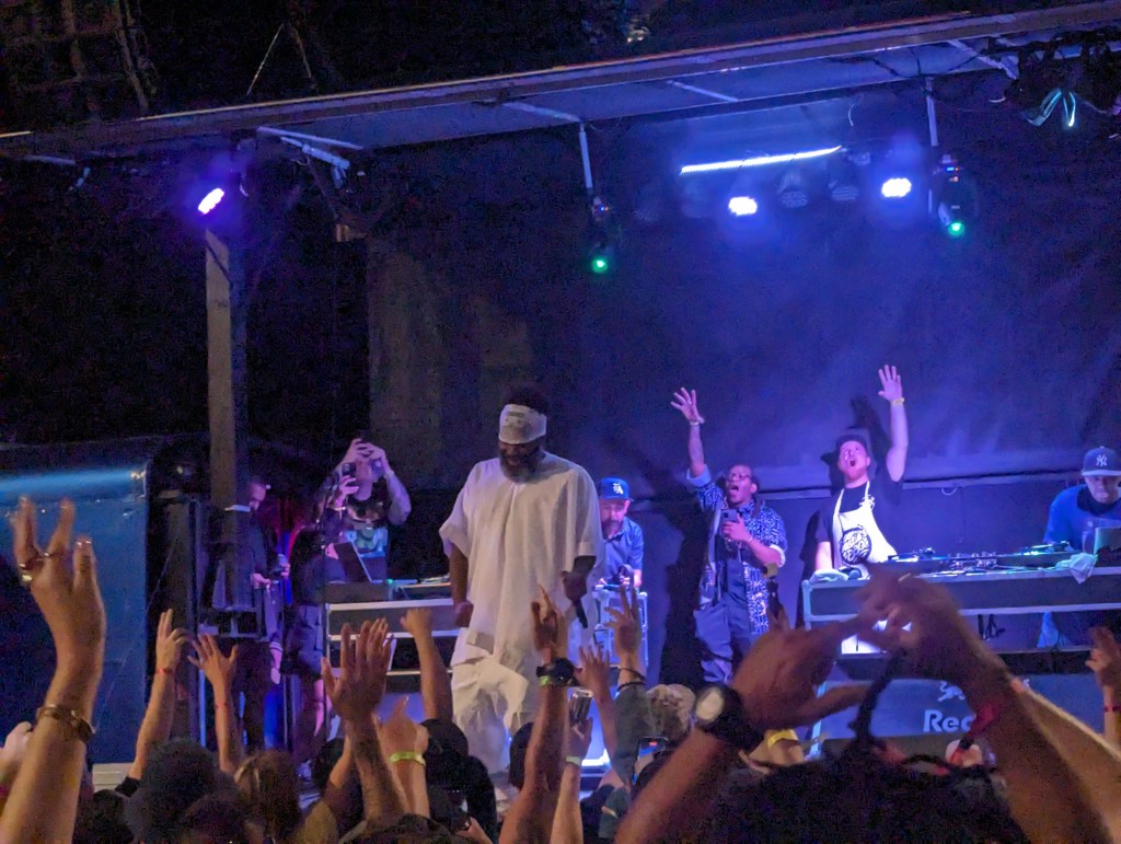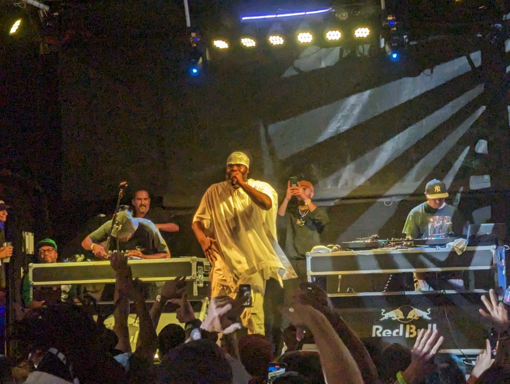 Introducing his next song as simply a freestyle about cheese, it would actually be the most recent song Pharoahe Monch would perform all evening, doing his guest feature on Your Old Droog & Tha God Fahim’s 2021 track “Slam Dunk Contest.” He performed the verse at a slow pace so that the crowd could pick up on all the cheese-related wordplay, and followed up the newest song of his set with the oldest, sticking to the theme of showing off wordplay with the 1994 Organized Konfusion track “Stray Bullet.” The throwback being at a much more rapid-fire pace, it’s incredible seeing Pharoahe Monch still able to nail his intricate flows on the verse live in person. With stray bullets on the mind, Pharoahe would next do a song telling a story about bullets in his hometown with another Internal Affairs deep cut, “Queens.” You could tell that unfortunately not all of the crowd was very familiar with Pharoahe’s catalogue, as he’d leave spaces for fans to fill in the sung parts of his verse, and there were only a few of us singing the climactic moment: “whyyyyyyyyyy, why-y-y-y-eee!!”
