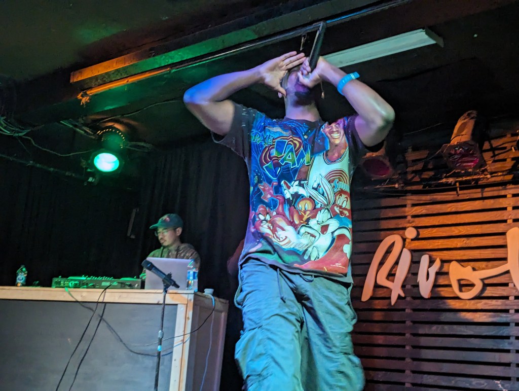 First up would be Le Zeppo from Durham Region, who’d hold it down for a solid 7-song setlist. His beats ranged from mellow to boom-bap, and he’d slice through them with sharp rhymes and a crisp delivery. Ricky would describe it as simply coming in, killing it, and leaving, as Le Zeppo simply served up verse after verse without any talking in between. Following him would be an artist named Jon Kabongo, who immediately grabbed the crowd’s attention by performing a freestyle over Jay-Z’s “Dynasty Intro,” a classic beat you have to come correct on if you’re going to spit over it. Kabongo had the crowd vibing throughout his set, with songs like “Street Games” and “Jon Wick” being standouts.