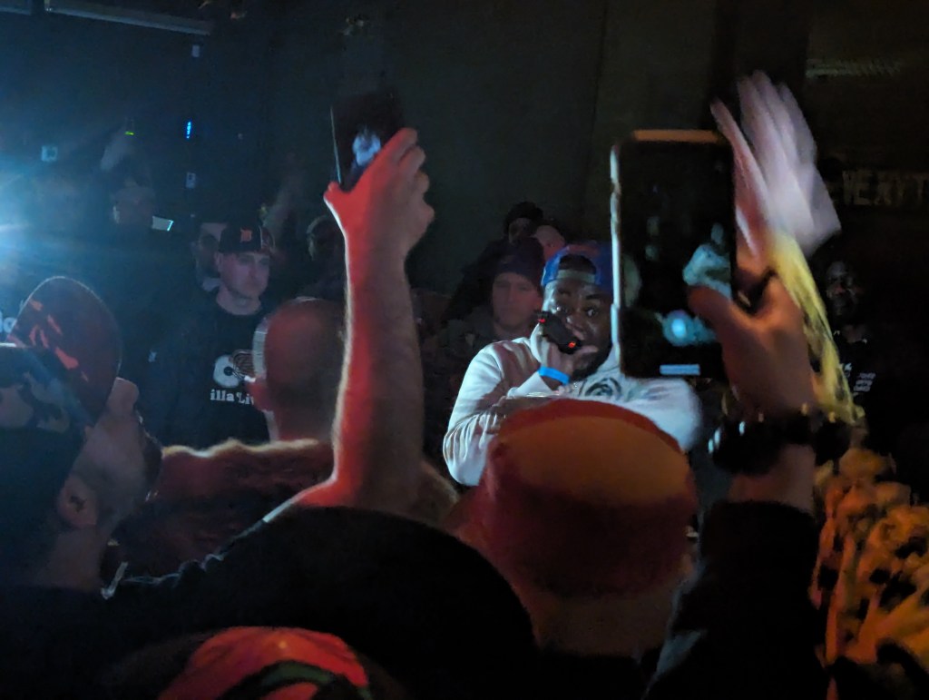 After showing J Dilla some love, the next Detroit producer to get some shine would be Black Milk, as Phat Kat would rock his verse from the Bishop Lamont track “Goatit,” rapping directly into a fan’s phone. Black Milk would get some more love towards the end of Phat Kat’s set, but first he’d make sure to do a segment for the ladies, counting to make sure there were enough of them in the building to appreciate his collabs with singer Melanie Rutherford: 2007’s “Lovely” and 2003’s “Destiny.” With that segment getting the ladies to groove, Phat Kat would quickly get back to that griminess, doing another new 2023 joint with “Re-Dedication” followed by a few more Black Milk-produced standouts, “Danger” and “F.A.N.S.” Phat Kat would jump down and walk through the crowd as he performed that last song, spitting his rhymes with precision while connecting with the fans in a cypher.