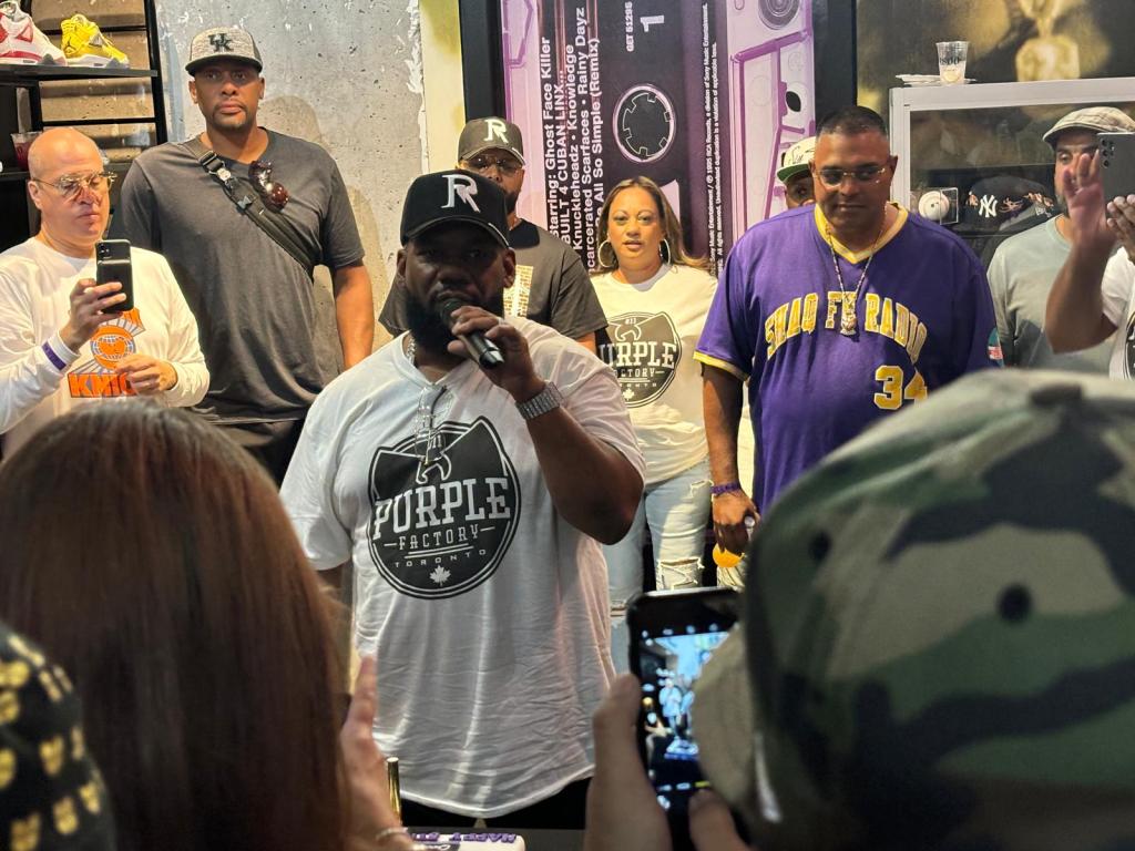 Raekwon will be the first to tell you that Toronto is like a second home to him. Over a decade ago, the Staten Island, New York-based emcee founded his own record label, Ice H2O Records while spending some time living here, and has always kept an ongoing connection to the city. Now returning to Toronto in 2024, he’d be back to celebrate a milestone for another one of his business ventures in the city, with his boutique shop 611 Purple Factory turning 5 years old. The shop located at 611 Dundas St. East has been a hub for Toronto fans of Raekwon, Wu-Tang and Hip-Hop in general, being a place to get haircuts, tattoos, exclusive merch, and has even hosted artist meet-and-greets over the years. Before the concert, Raekwon would be hosting a VIP event at The Purple Factory to celebrate the shop’s 5th anniversary, and we decided to check it out before heading over to The Opera House.