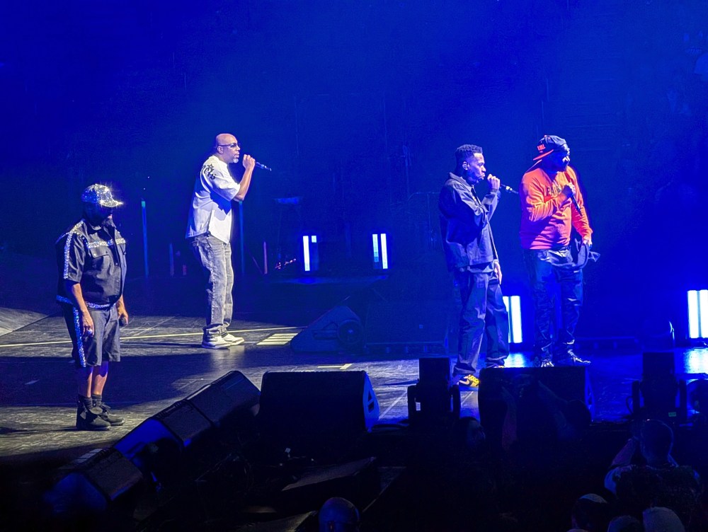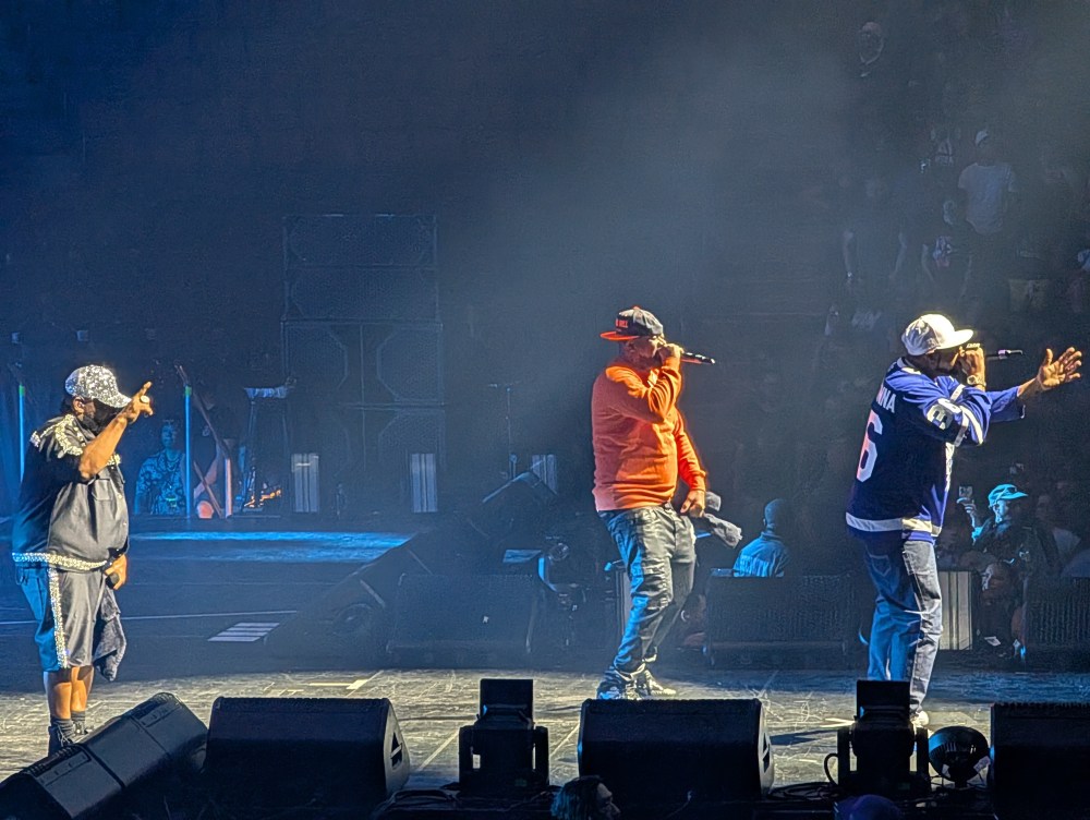 Run The Jewels would close out their set with a couple more RTJ2 throwbacks, cranking up the energy again with the hype Zack De La Rocha collab “Close Your Eyes (And Count To Fuck),” and pulling out a rare joint I hadn’t seen them perform in over a decade, the album’s closer “Angel Duster.” They’d thank the crowd for rocking with them and made their way backstage as the beat played them out, wrapping up a solid 45-minute set. I personally would’ve loved to see them keep going, with songs like “Call Ticketron” meant to fit an arena setting like this, and RTJ4 joints like “Out Of Sight,” “Goonies Vs. ET” or “Walking In The Snow” being sorely missed, but you could tell the majority in the building were eagerly waiting for Wu-Tang to come out. The inflated RTJ4 logo would get pulled down from the rafters and the stage would be prepped for the headliners as ads for official Wu-Tang merch played on the jumbo screens.