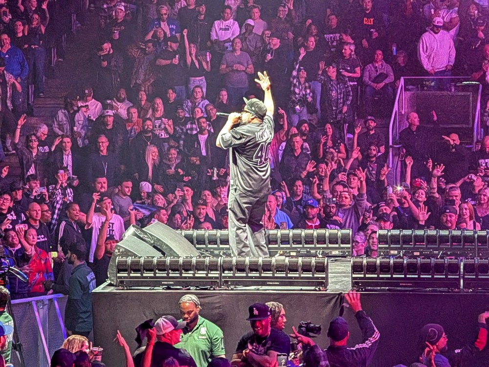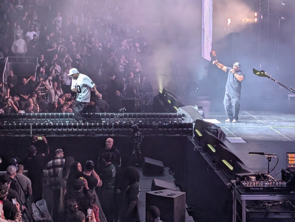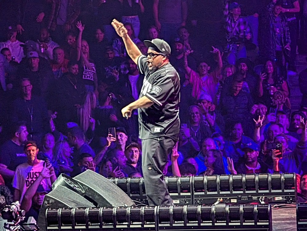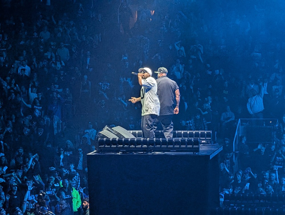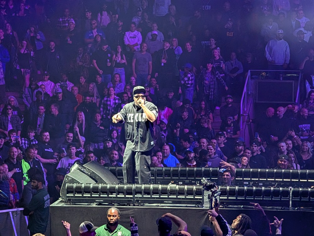 As a fan who’s seen Ice Cube perform three other times before this concert, you could tell right away that the production value of Ice Cube’s live show was stepped up significantly for the arena setting. The music video for the 2025 single “Before Hip-Hop” played on a projector screen, followed by an introduction with Ice Cube narrating his beginnings with N.W.A., and while our side-angle seats gave us no view of the actual screen, you could feel the anticipation building. Pretty soon the man himself graced the stage, and the building got hyped as the familiar intro played from a song even seasoned fans hadn’t seen Cube perform live in years, the first words rapped into the mic to start the show: “Fuck Tha Police!”