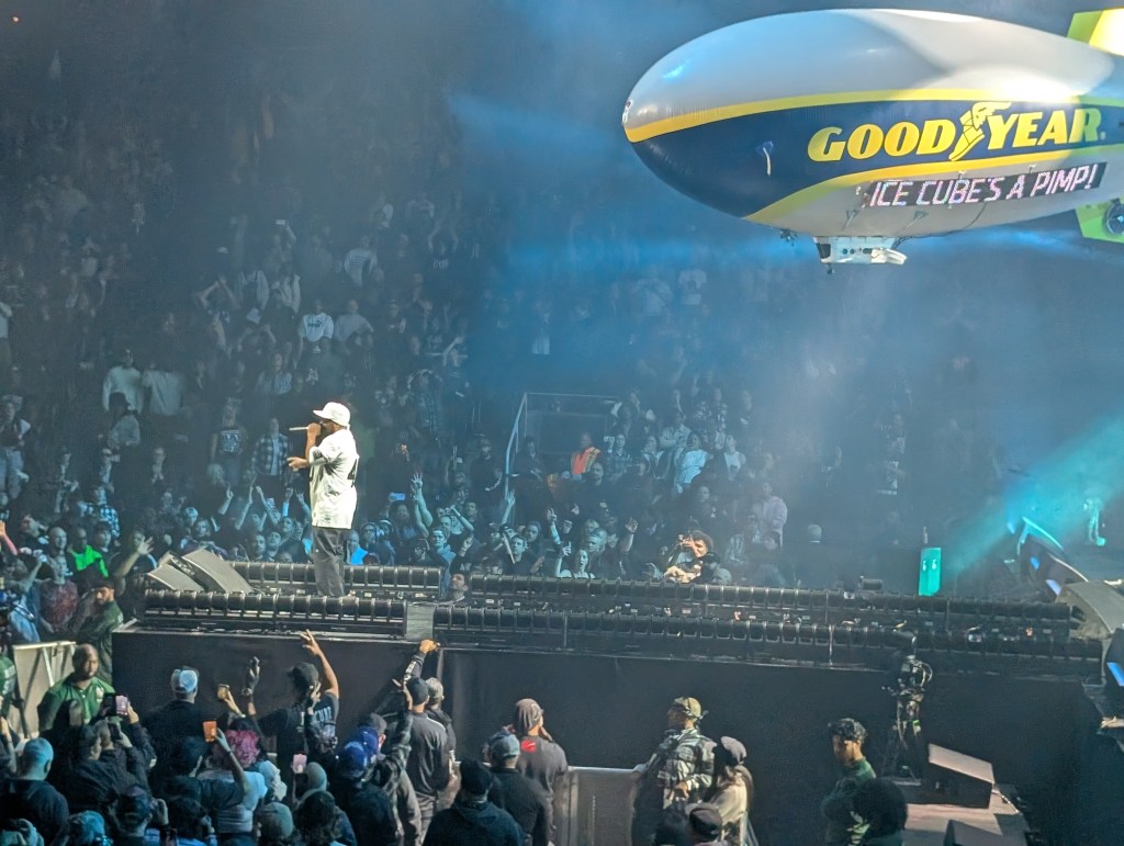 Knowing damn well there was at least one more hit record left off the setlist, WC encouraged the fans to chant for an encore, and after a minute of cheering, a blimp would appear and start flying around the arena. If the blimp itself wasn’t enough of a hint, the words “Ice Cube’s A Pimp!” were written across it, pulling imagery right out of Cube’s 1992 classic, “It Was A Good Day.” Ice Cube would return to the stage, and all the fans in the building waved their arms to the slow-paced beat as he performed the entire track from beginning to end, getting an extra dope moment being able to point to an actual blimp as he rapped about it. Taking a moment to thank the fans one more time, Cube could have ended the show right there and we’d call it the perfect ending, but he decided to give us one more song as a bonus. With the setlist of the concert structured relatively chronological, Ice Cube had performed songs from the ’80s, ’90s, 2000s, and even a couple from the 2010s; to cap off the evening, he’d pull out one song from the 2020s, rocking the ’24 single “It’s My Ego” for some more upbeat, feel-good energy to end the night.