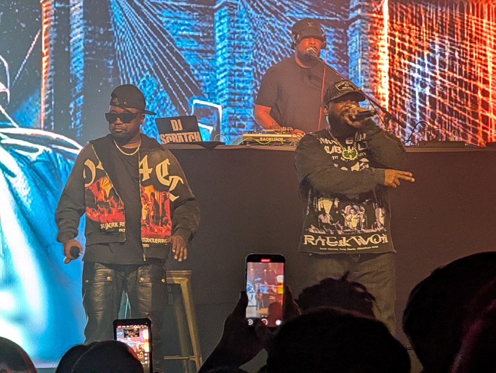 Raekwon would next perform his verse on Ghostface Killah’s “Daytona 500,” although it looked like him and DJ Scratch weren’t in-sync, as he gave a signal to cut the beat so he could rap acapella, but instead ended up rapping over the full track with his recorded vocals still on it. This is a big no-no for most emcees, but Rae was able to power through it, delivering sharp vocals on the mic that cut through and were timed well to avoid the sound clutter you’d expect when that happens. Rae & Hav would then take a moment to highlight their new music from 2025, Havoc performing the Infinite album intro “Against The World,” followed by a song that got the ladies in the building grooving, the Jorja Smith-assisted “Down For You.” The ladies segment was short-lived though, as Raekwon would come back with the hard-hitting “Bear Hill” off of The Emperor’s New Clothes, complete with horror imagery shown on the screen behind him, getting heads nodding to the beat.