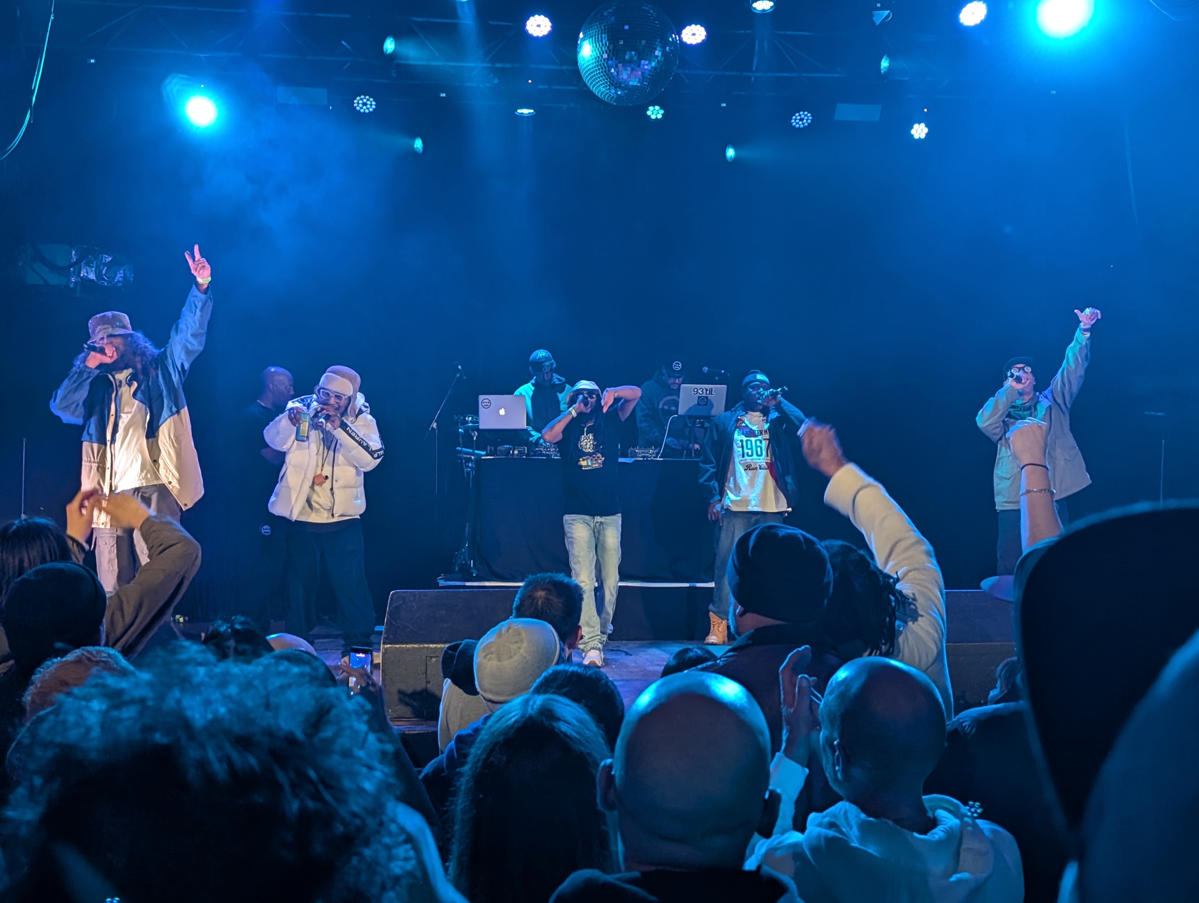After a performance of the solo track “Phesto D,” the Hiero crew started to promote some of their new material, Casual going first with the song “Hard Drive Music” off of his Black Magic album. Pep Love would follow with a joint off of Acres of Diamonds, shouting out local record stores where fans could cop the vinyl, and Del would preview some music off of his upcoming Devil In The Details project with Domino, freestyling over one of the beats used for the album. It’s these songs where the crowd quieted down to tune in to the lyrics, most of these being first-time listens, and each emcee killed their verses, spitting their bars clearly for the fresh ears to pick up on. Souls of Mischief would also perform a relatively new joint with 2024’s “yes LOvELy” but it would be sprinkled in between some absolute classics, like Del’s solo performance on “At The Helm,” Opio, Phesto and Casual cranking the energy up to “Halo,” and Pep Love doing a smooth transition from a speech to singing his hook on “All Things.”